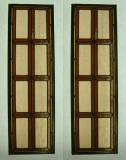 Reclaimed stained glass for sale. Red and beige leaded door panels. EGD Glass.